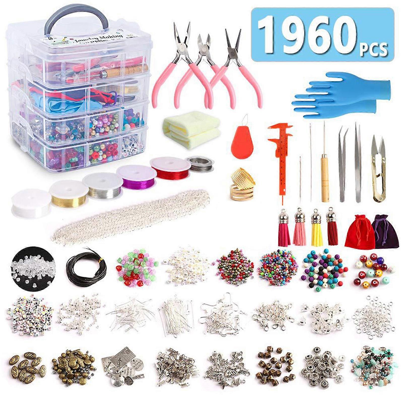1960 Pieces Jewelry Making Supplies Kit with Beads Charms Findings Jewellery Pliers Beading Wire for DIY Necklace Bracelet Earrings Accessories