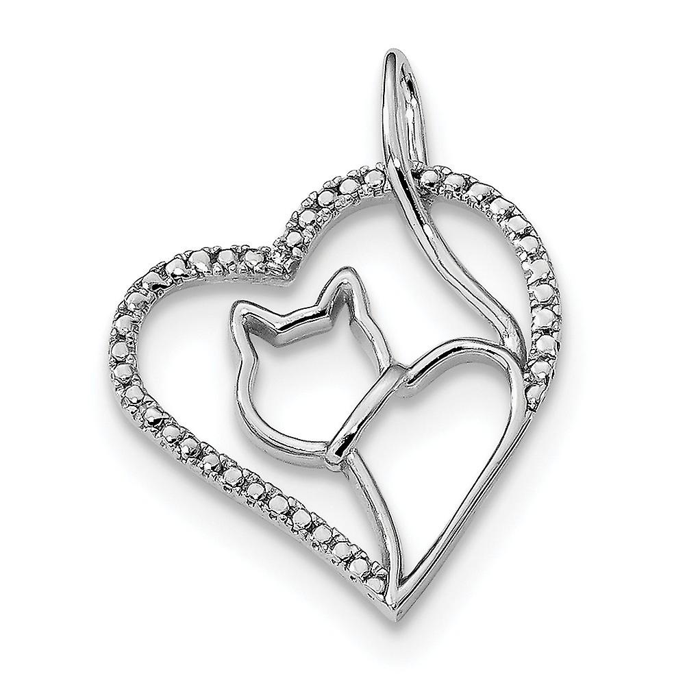 19.6mm 925 Sterling Silver Rhodium Plated Cubic Zirconia Love Heart With Cat Silhouette Pendant Necklace-Pendant for Wom