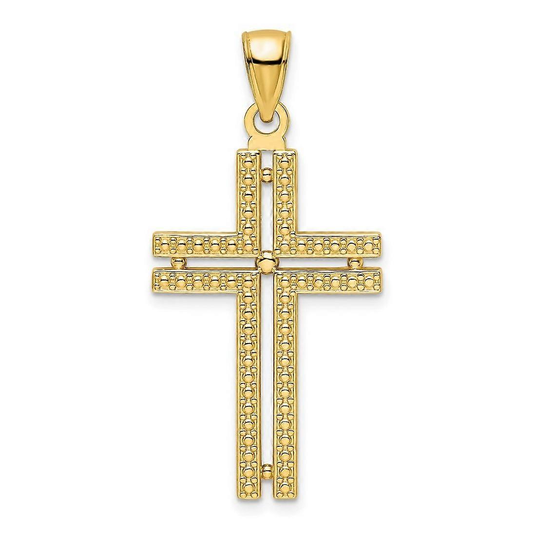 19.7mm 14k Solid Yellow Gold Polished Beaded Religious Faith Cross Pendant Necklace-Pendant for Women