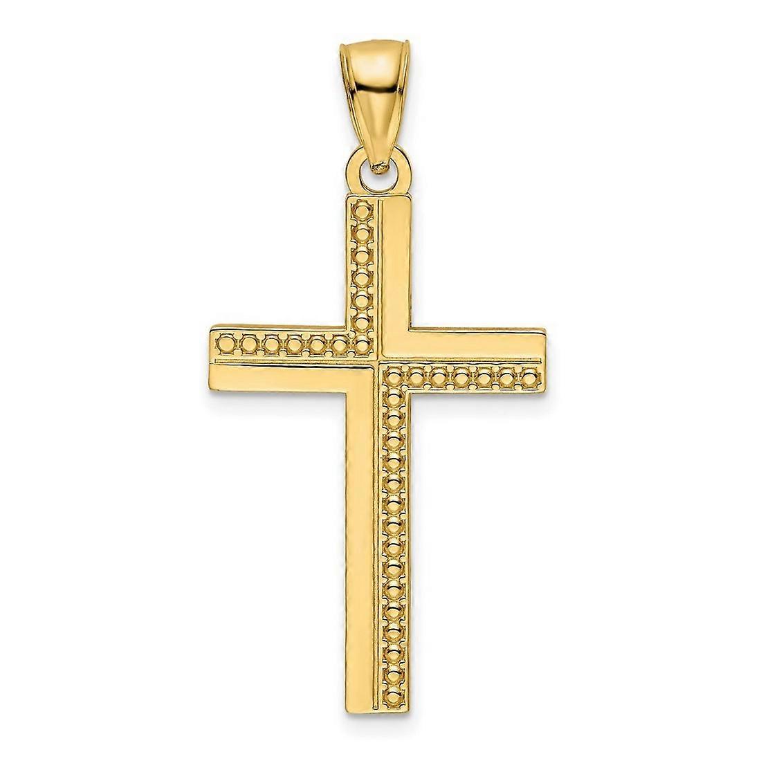 19.8mm 14k Solid Yellow Gold Polished Beaded Religious Faith Cross Pendant Necklace-Pendant for Women