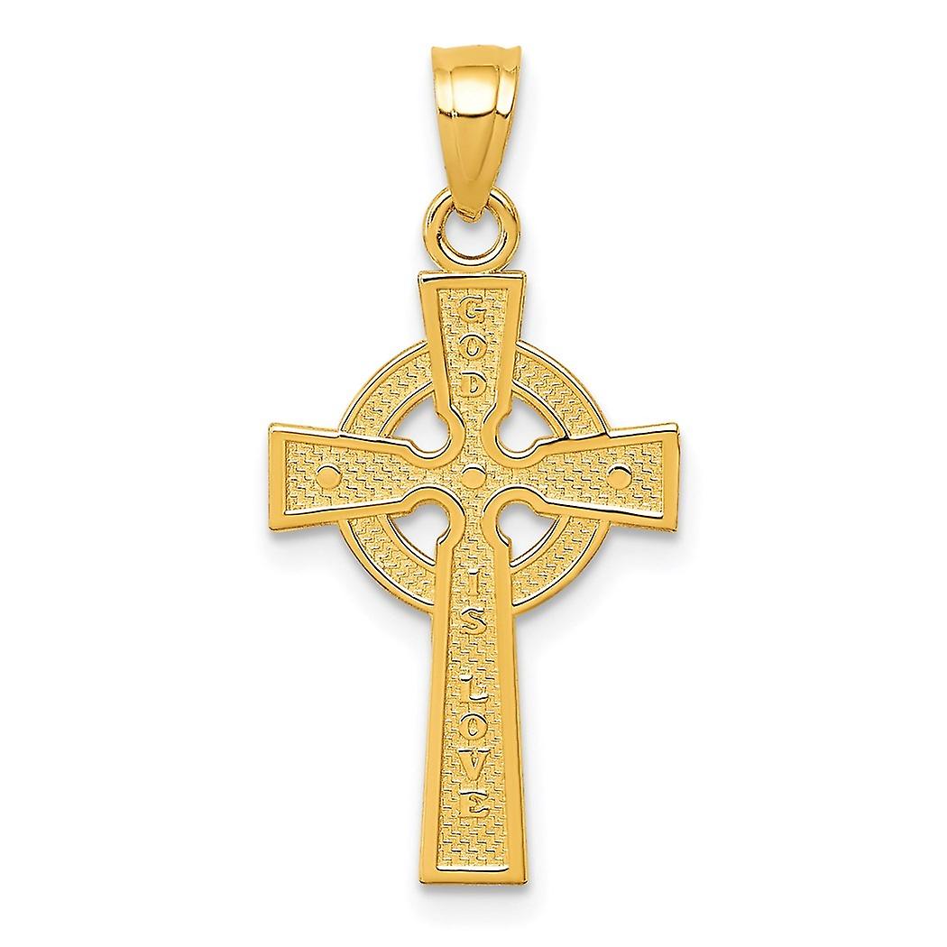 19mm 10k Solid Yellow Gold Reversible God Is Love Irish Claddagh Celtic Trinity Knot Religious Faith Cross Pendant Neckl