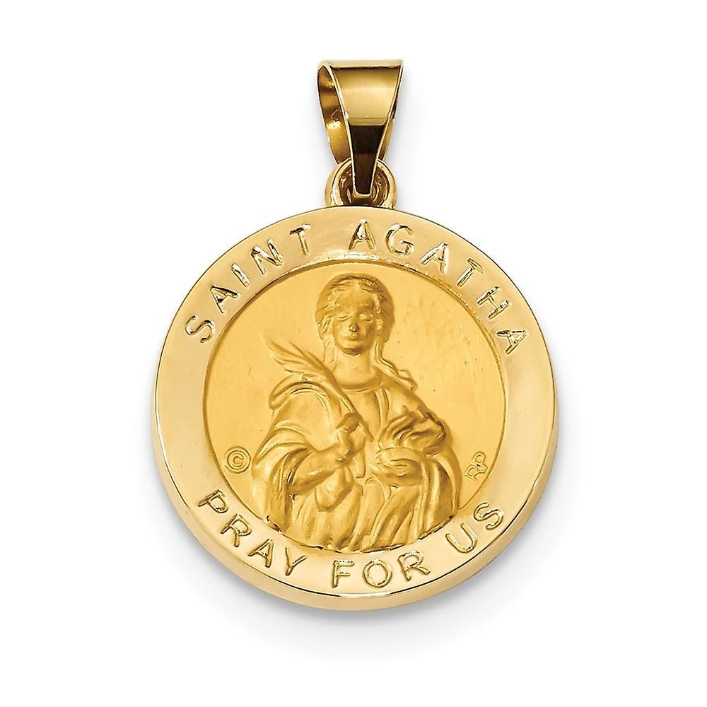 19mm 14k Solid Yellow Gold Polished and Satin St. Agatha Hollow Medal Pendant Necklace-Pendant for Women