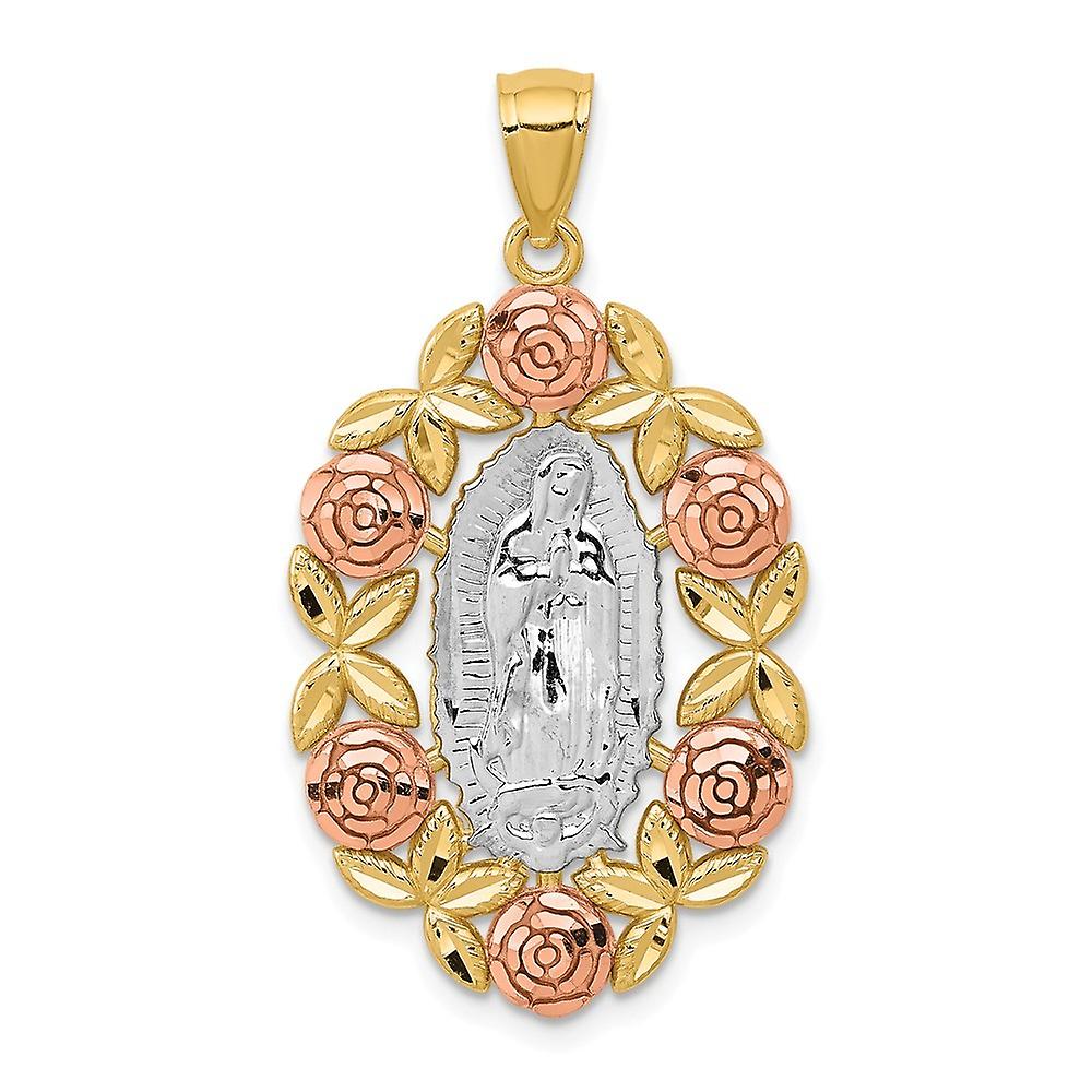 19mm 14k Two tone White Rhodium Our Lady Of Guadalupe Pendant Necklace-Pendant for Women - 2.6 Grams
