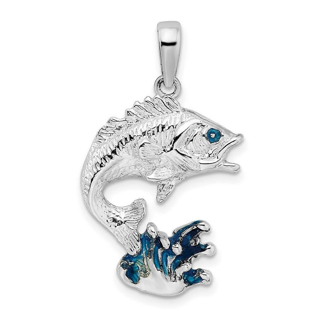 19mm Sterling Silver Rhodium-plated Enameled Jumping Bass Fish Pendant - 3.0 Grams In Sterling Silver in Plated Metal - - Charm/Element Width: 19 mm - Width of Item: 19 mm - Charm/Element Length: 22 mm - Length of Item: 30 mm - Finish: Polished - - This Item Does Not Ship With a Chain