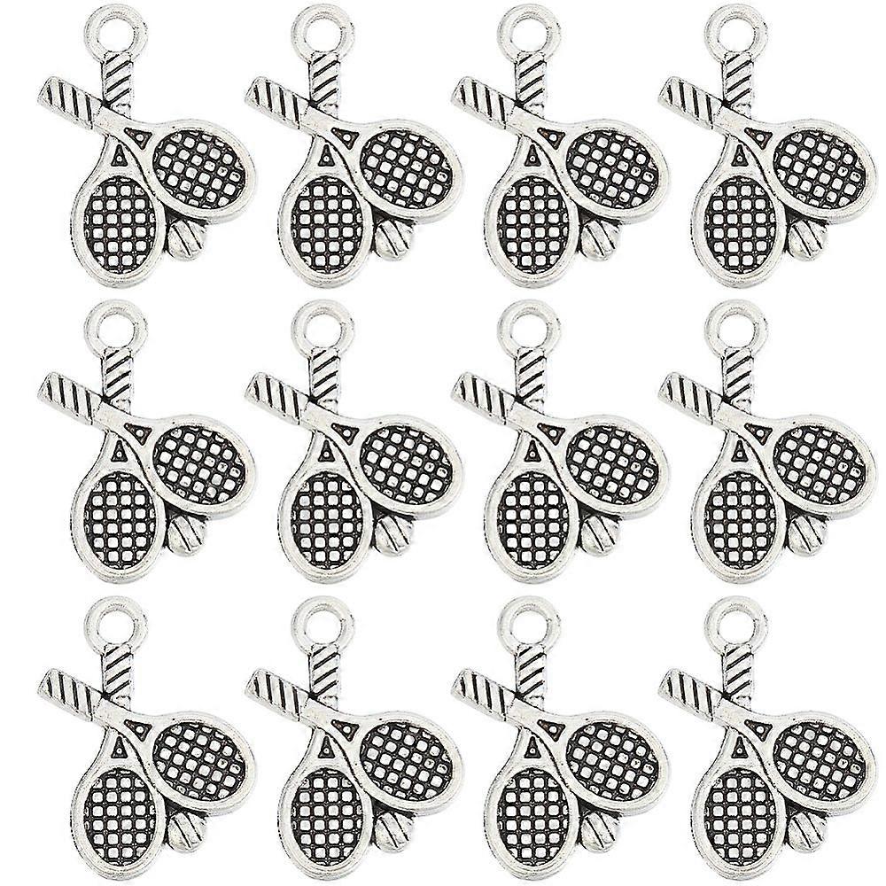1Box 100Pcs Tibetan Style Zinc Alloy Pendants Sports Charms Tennis Racket Antique Silver 20x14x3mm Hole: 2mm