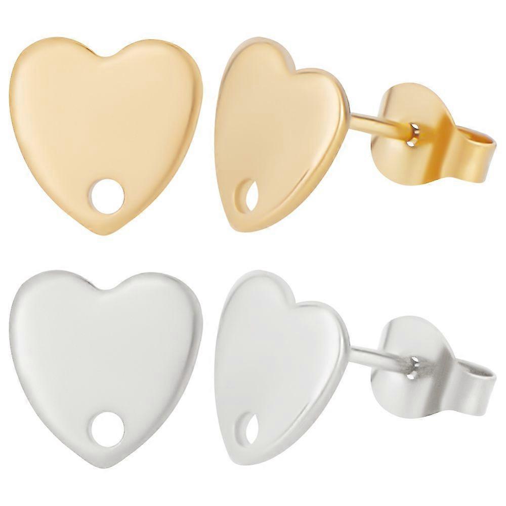 1Box 40Pcs 2 Colors 304 Stainless Steel Heart Stud Earring Findings with Hole & Ear Nut Golden & Stainless Steel Color 8x8mm Hole: 1mm Pin: 0.8mm 20Pc