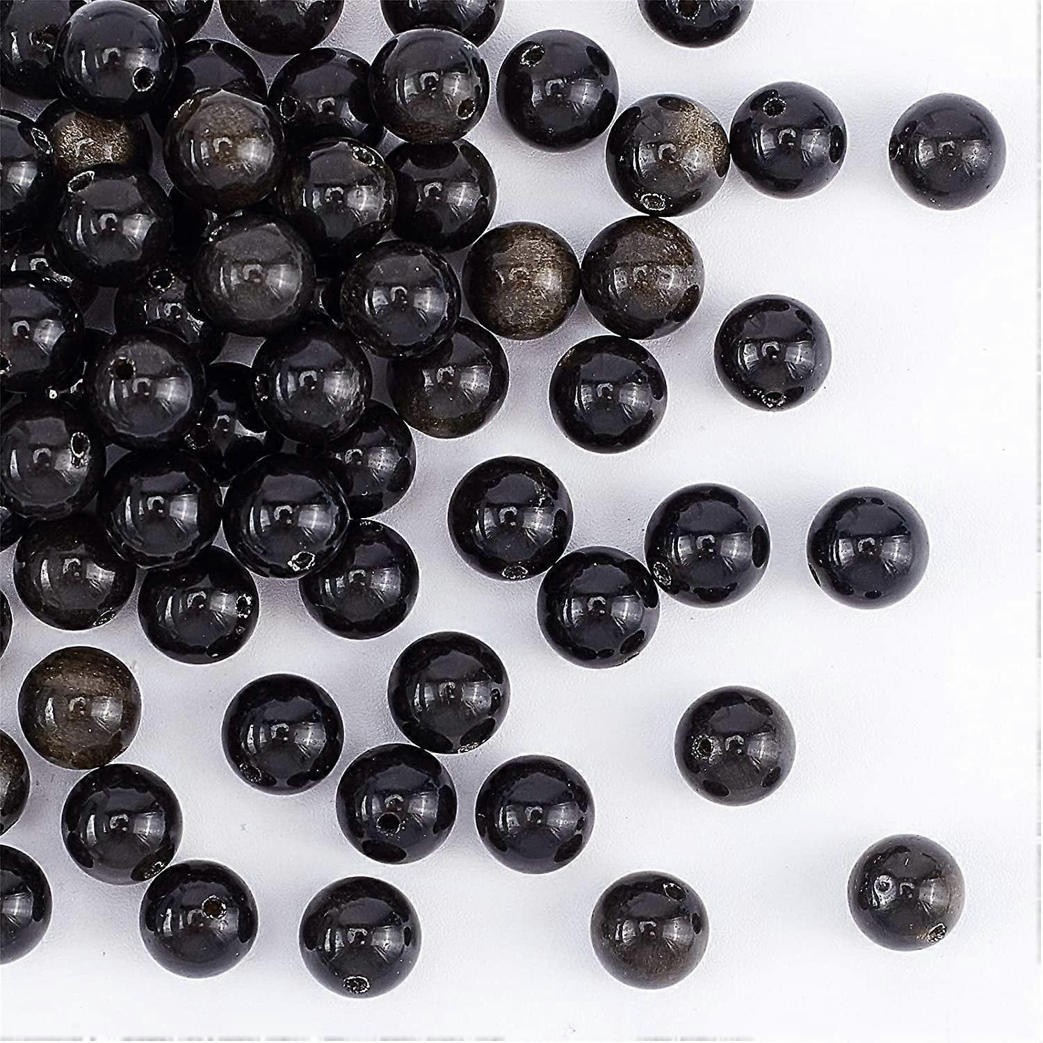 1Box 98pcs 8mm Natural Obsidian Stone Beads Golden Xaga Bead Strands Round Loose Gemstone Beads Energy Stone for Bracelet Necklace Jewelry Making