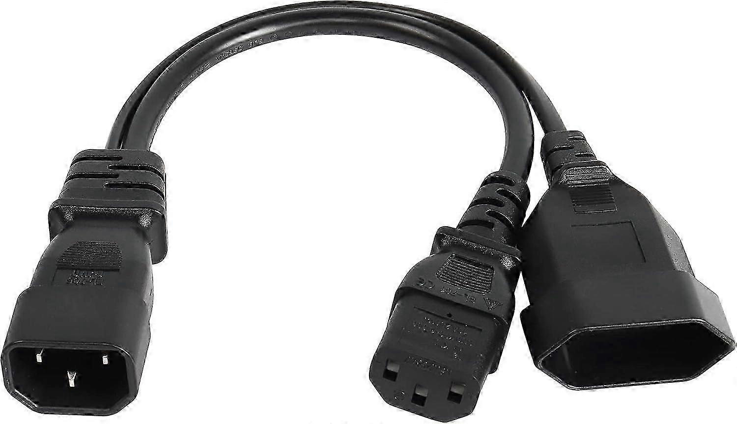 1FT C14 to C13 + EURO Y Splitter Power Cable,IEC 14 Male to IEC 13 Female & EURO CEE7/16 Female Extend Conversion Cord for Computer