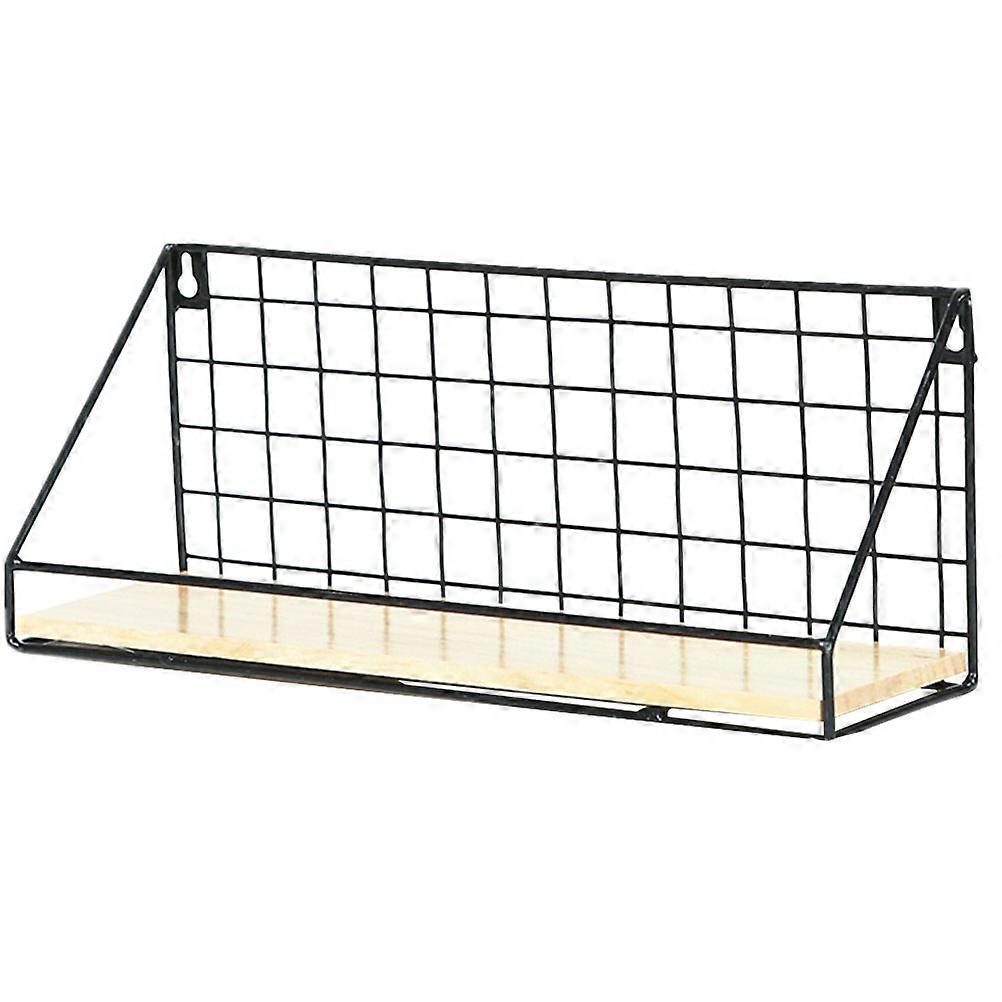 1Pc Iron Art Punch Free Storage Rack Wall Mounted Storage Shelf Simple Wall Storage Basket for Home Dorm (Black, Large Size)