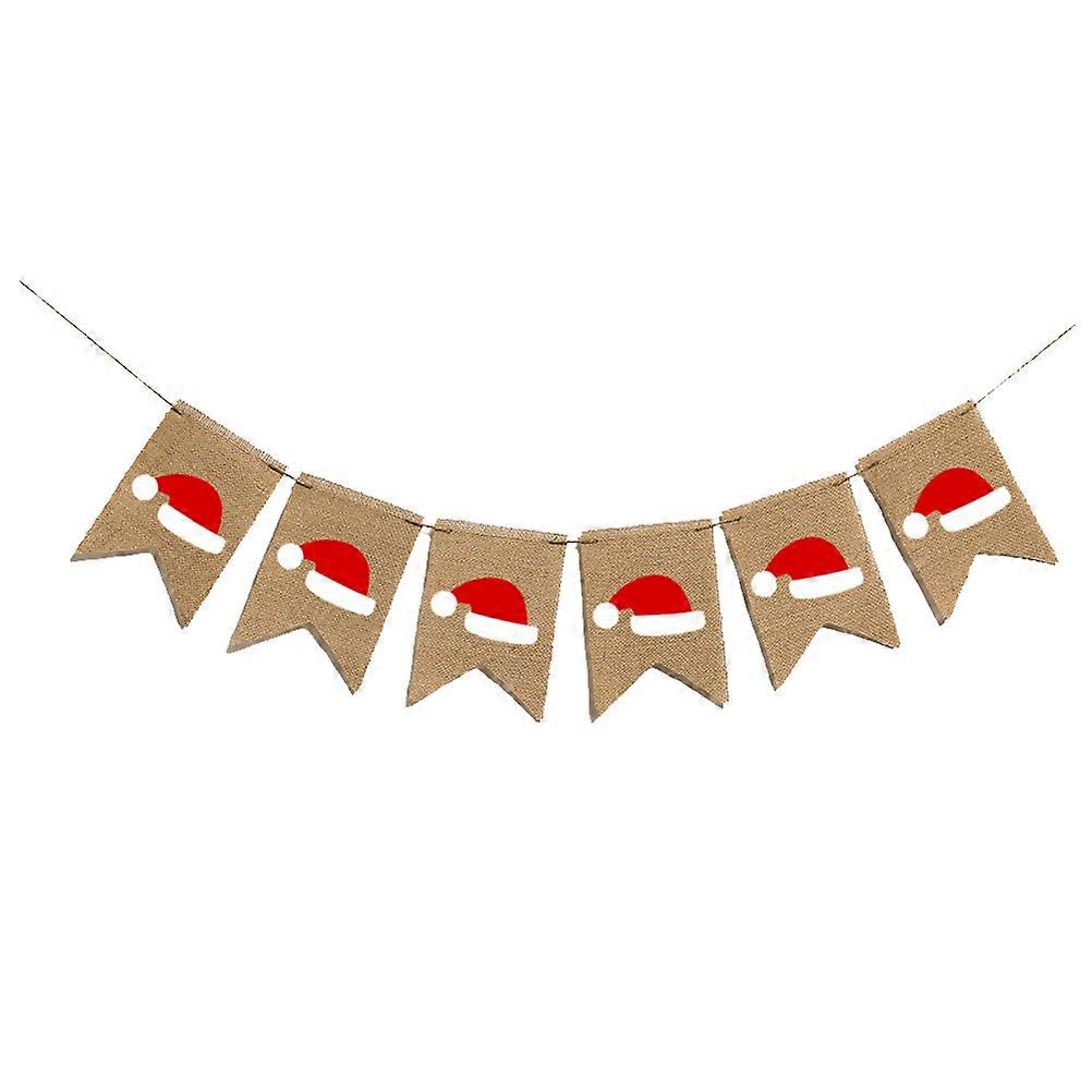 1PC Creative Christmas Decoration Christmas Hat Burlap Banner Party Bunting Christmas Pull Flag Home Office Wall Hanging Banner