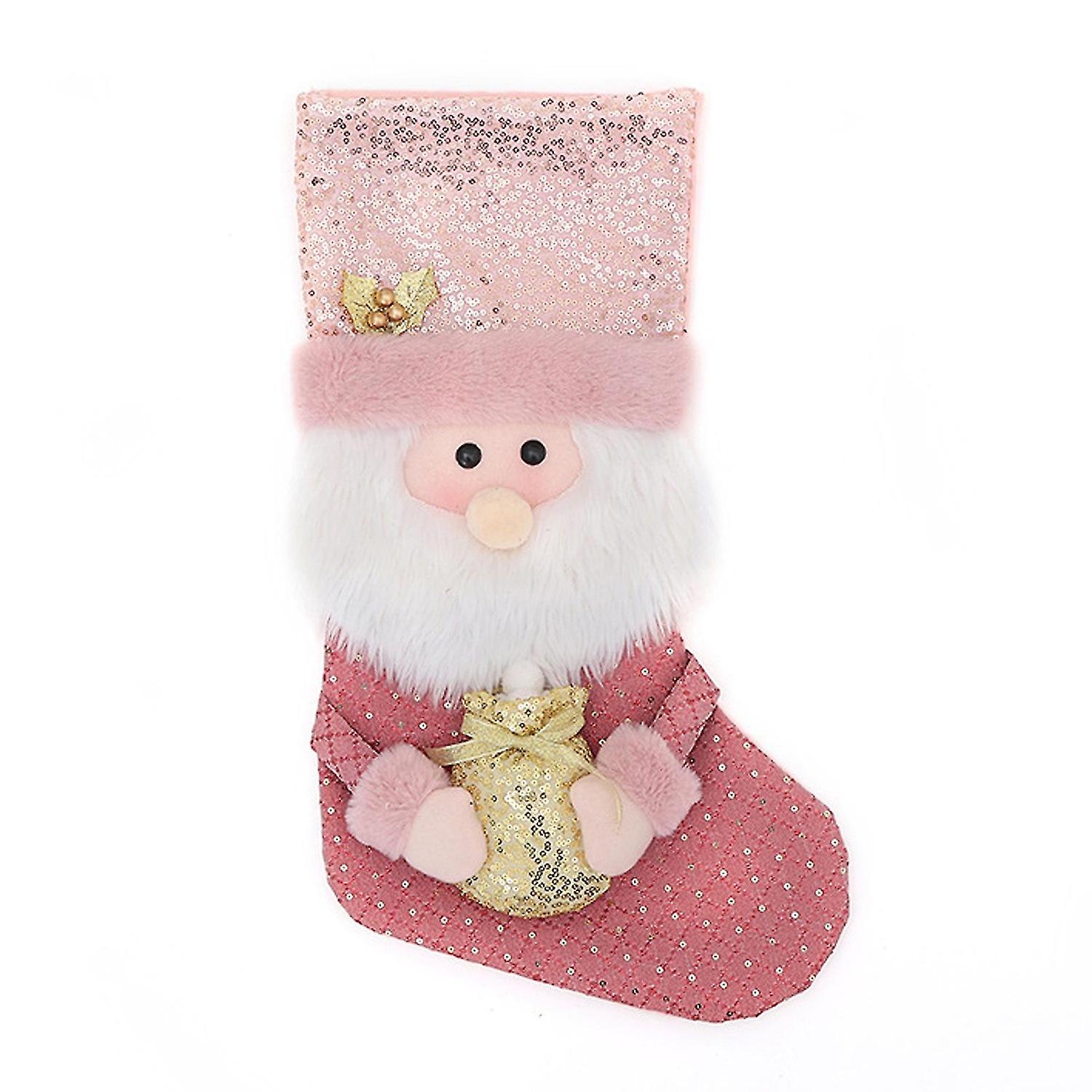 Versatile Use: This Christmas stocking with sequins can hold chocolates, candies, plush toys, and other small gifts, making it perfect for Christmas parties and as surprise gifts for friends.Festive Atmosphere: The pink stocking decorated with Santa Claus/snowman creates a strong Christmas atmosphere, ideal for Christmas gift packaging and decoration.Durable And Detailed: The stocking is made with exquisite workmanship, ensuring it is not easily worn or torn, and the fine details add to durability.Wide Applications: Our stocking can be hung on fireplaces, Christmas trees, walls, and front doors, bringing a warm and festive atmosphere to any space.Perfect For Home And Office: Whether it's for your living room, office, or any other place you want to decorate, the stocking will add a touch of Christmas spirit.