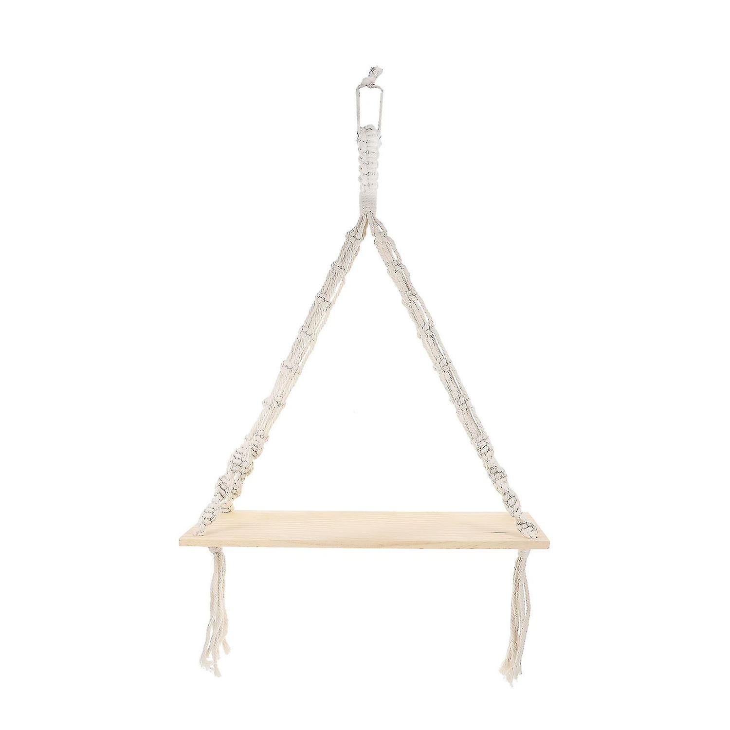 1pc Cotton Rope Hanging Shelf Wooden Shelf Wall Shelf For Bonsai Flower Pot