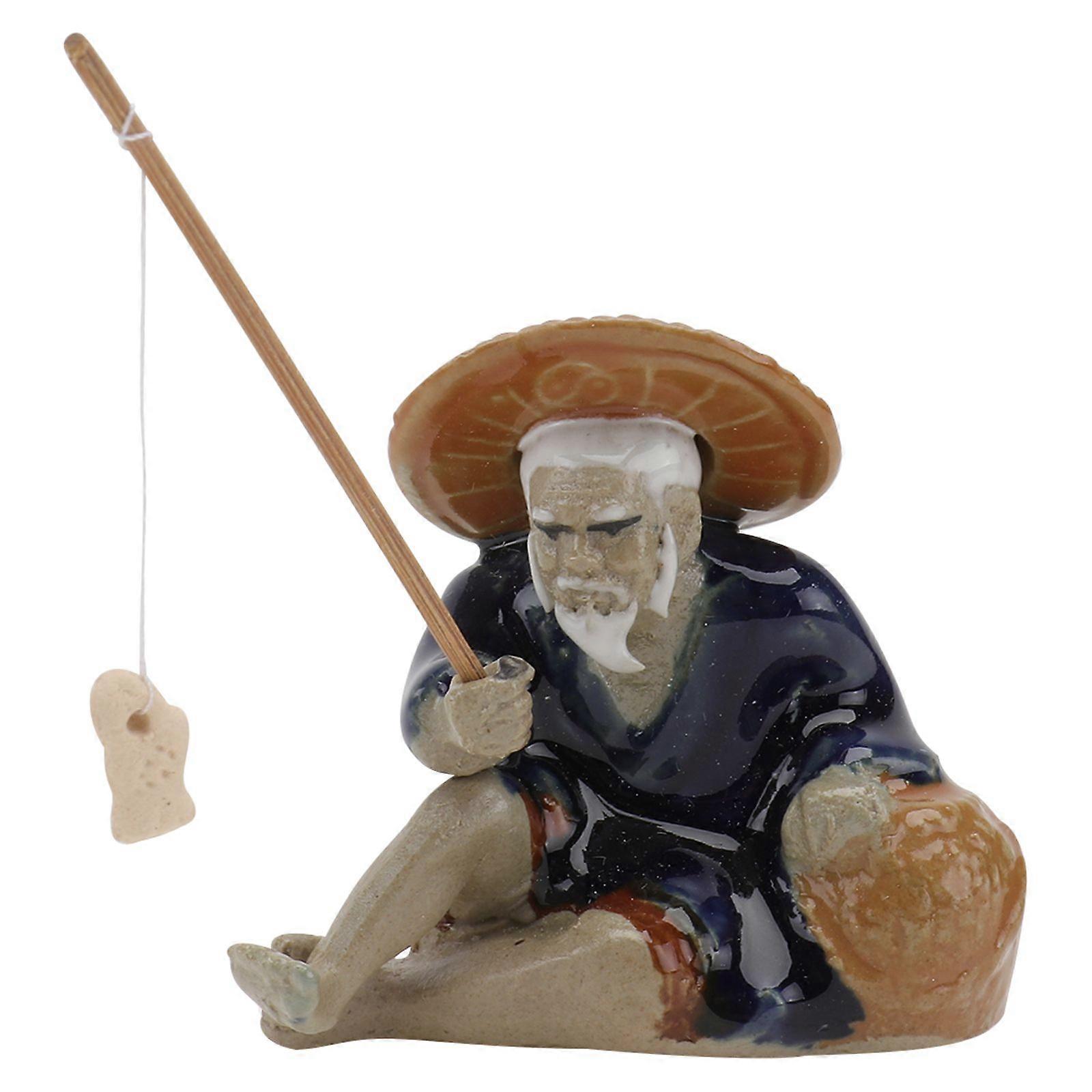 1Pc Chic Bonsai Adornment Fish Tank Ornament Ceramics Fisherman Decoration
