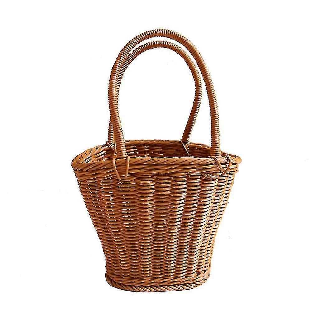1pc Simulated Rattan Woven Basket Portable Gift Basket Pastoral Style Storage Basket Wedding Decorative Flower Basket Outdoor Picnic Basket For Home O