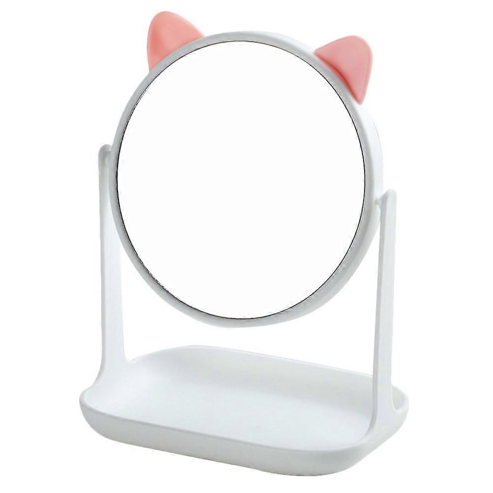 1pc Desktop Makeup Mirror Plastic Storage Tray Design Girl Makeup Mirror