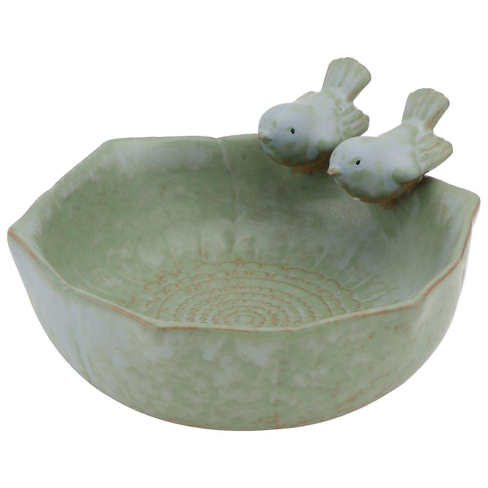1Pc Bird Feeder Ceramic Basin Creative Household Bird Feeder Decor (Green)
