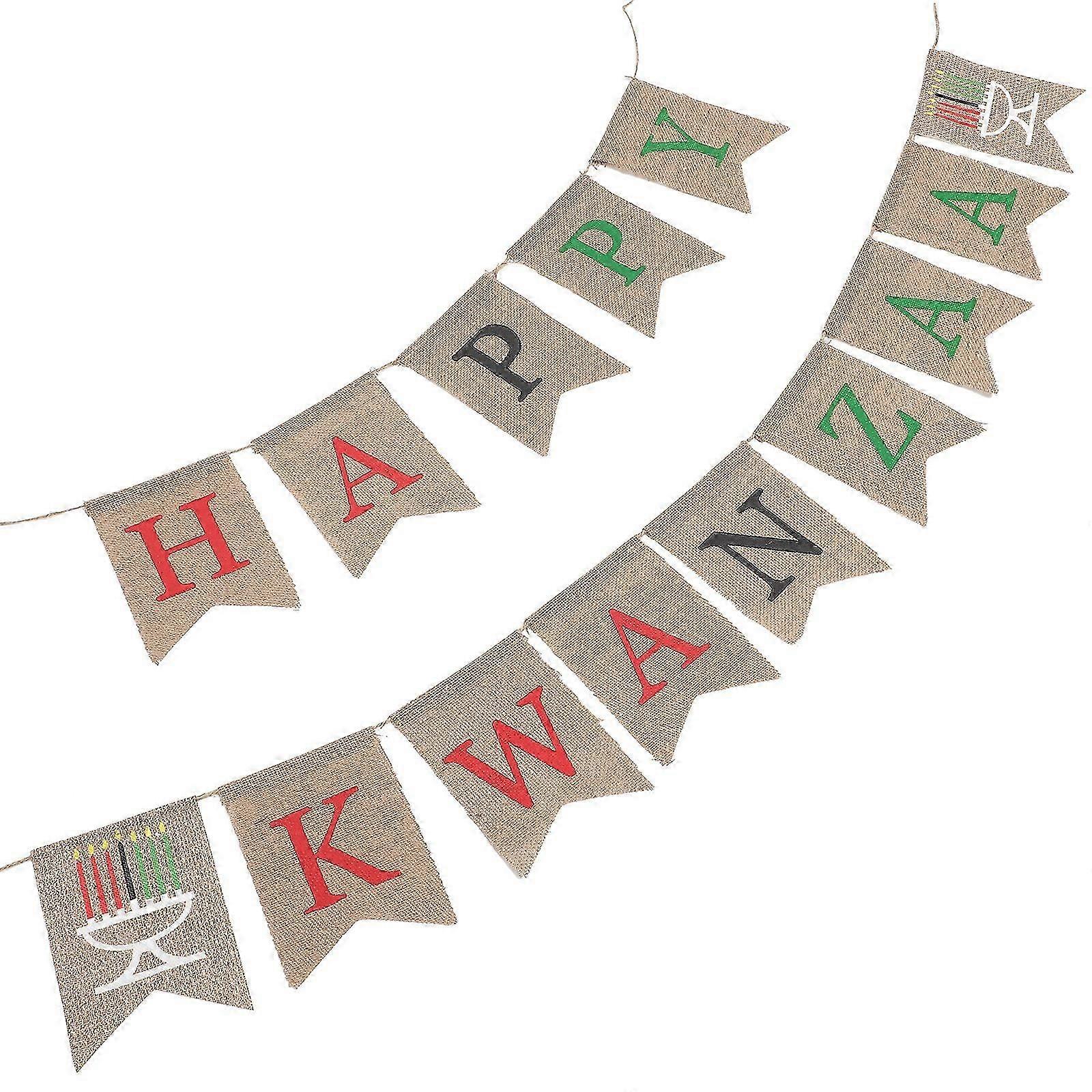 1pc Happy Kwanzaa Party Decorative Linen Banner Bunting Banner (Assorted Color)