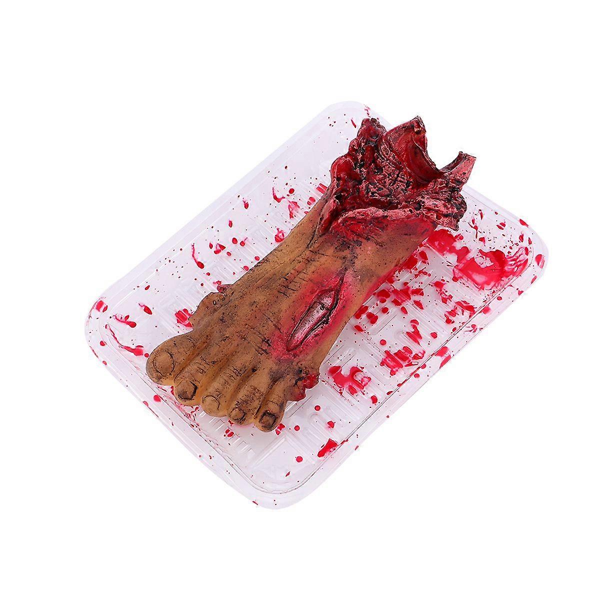 1Pc Halloween Trick Toy Decoration Bloody Foot with Dish Creepy Trick Toy (Red)