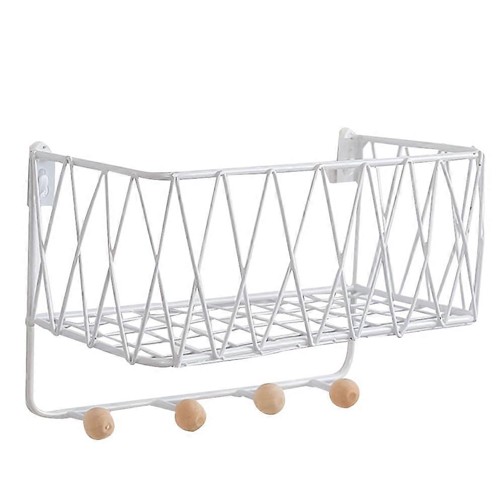 1pc Wall-mounted Storage Rack with Hooks Iron Hollow Ledge Shelf for Home Bedroom Living Room - Size S (White)