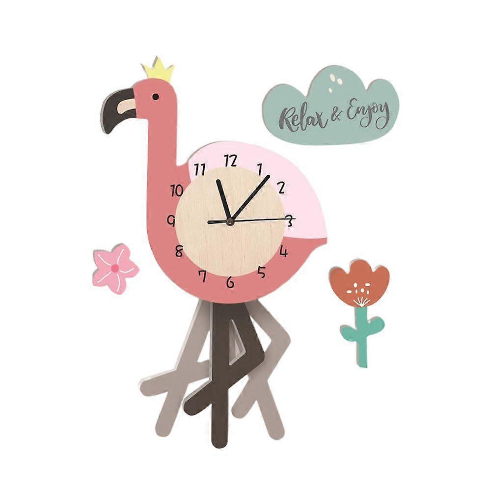 1pc Flamingo Pattern Pendulum Clock Kindergarten Decorative Wall Clock PVC Wall Clock (Pink)