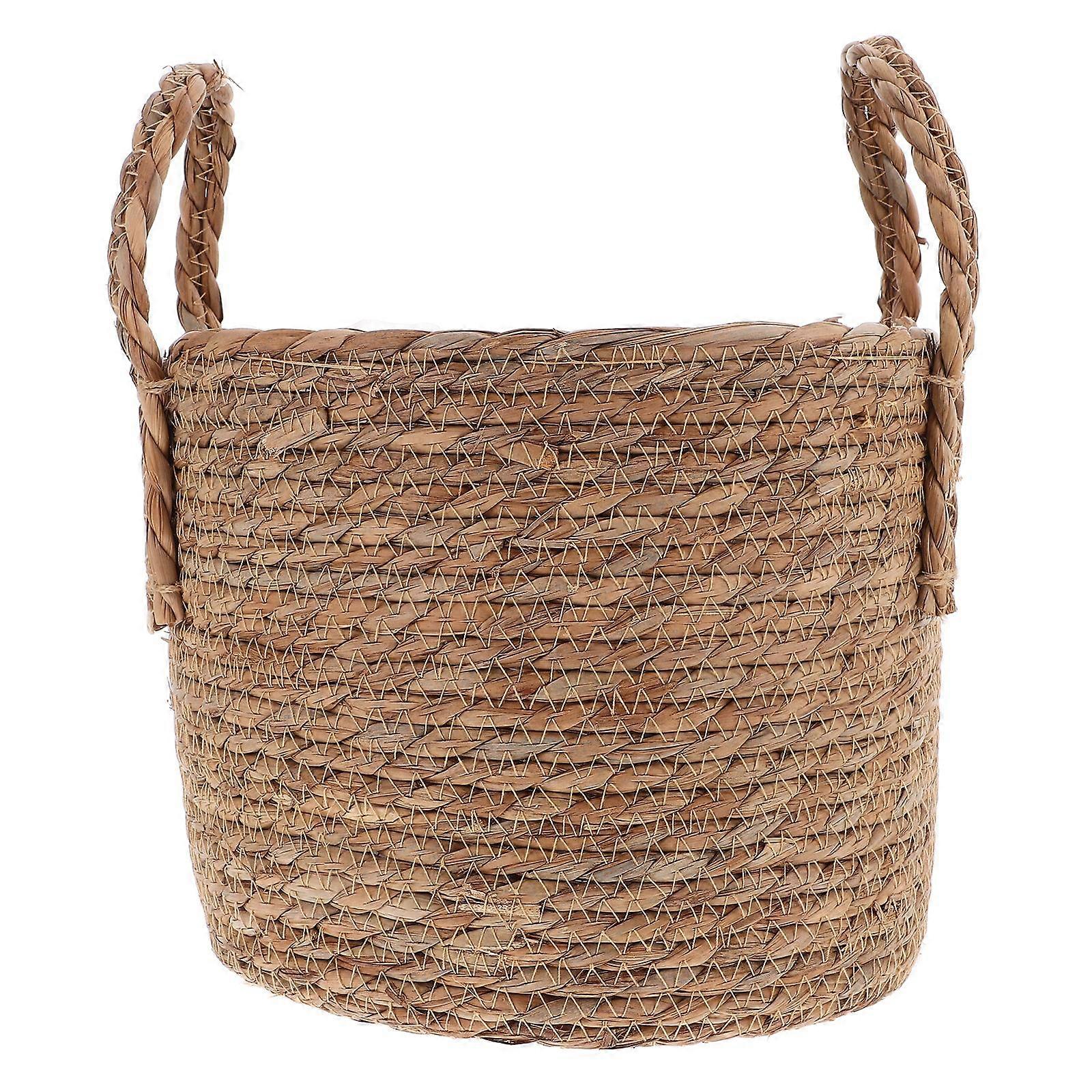 1pc Home Decor Retro Storage Straw Flowerpot Multipurpose Flower Planter (25CM)