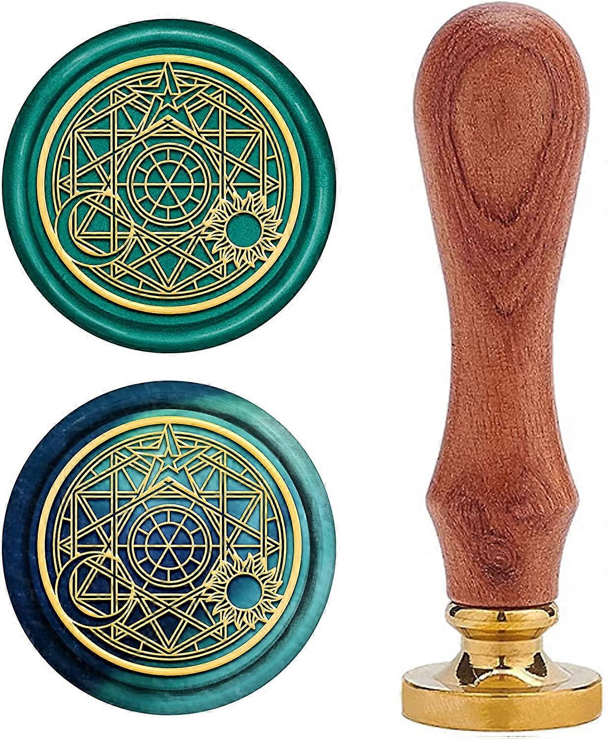 1pc Magie Die Wax Seal Stamp, Vintage Wax Sealing Stamps Magic Array Retro Wood Stamp Removable Brass Head 25mm for Wedding Envelopes Invitations Embe