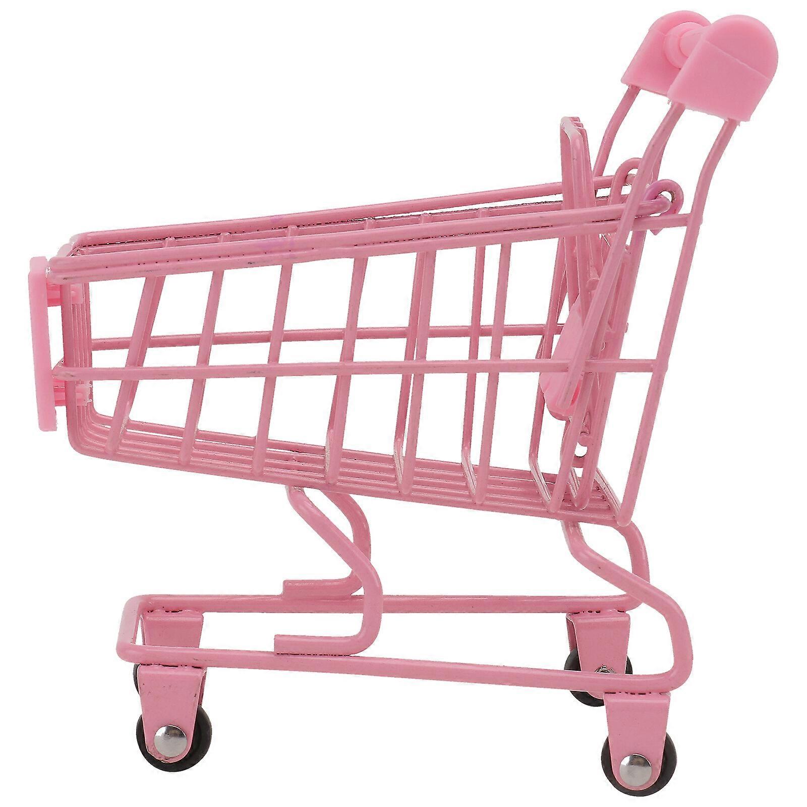 1PC Mini Shopping Cart Trolly Desktop Storage Basket Holder Photo Props - Size S (Wheel Color Random)