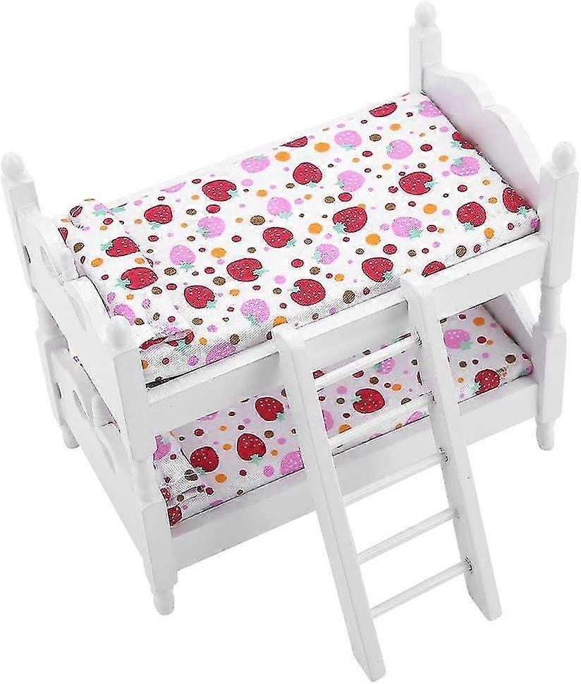 1pc Miniature Dolls House Bed Mini Furniture Furniture Model Set Doll Bunk Bed Toy Doll Bunk Furniture Toy For Dollhouse(pink Strawberry)