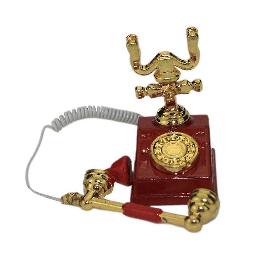 1PC Mini Retro Phone Model Decor Miniature Scene Phone Model Alloy Vintage Phone Model Crafts Delicate Mini House Accessories for Office Cafe Home Dec