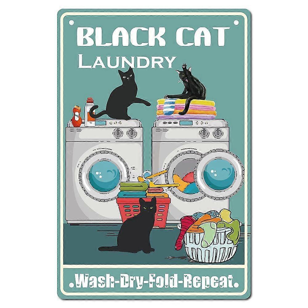 1pc Metal Tin Sign Black Cat Signs Retro Vintage Funny Wall Decor Art Mural Hanging Iron Painting Poster Plaque for Laundry Room Home Garden Bar Pub L