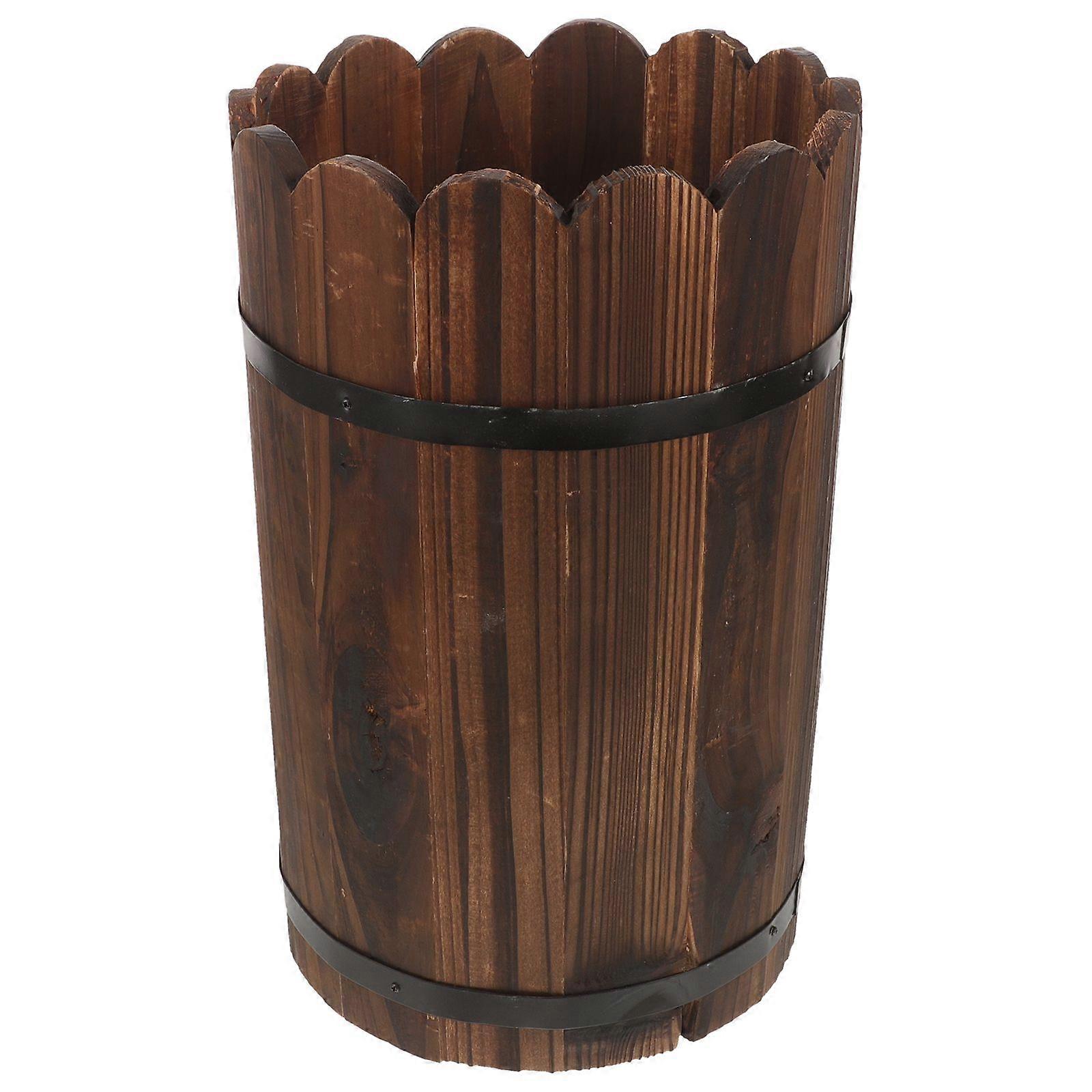1PC Retro Wooden Flower Bucket Carbonization Flower Arrangement Wood Barrels Creative Flower Arrangement Kettle Handmade Flower Container for Home Sho