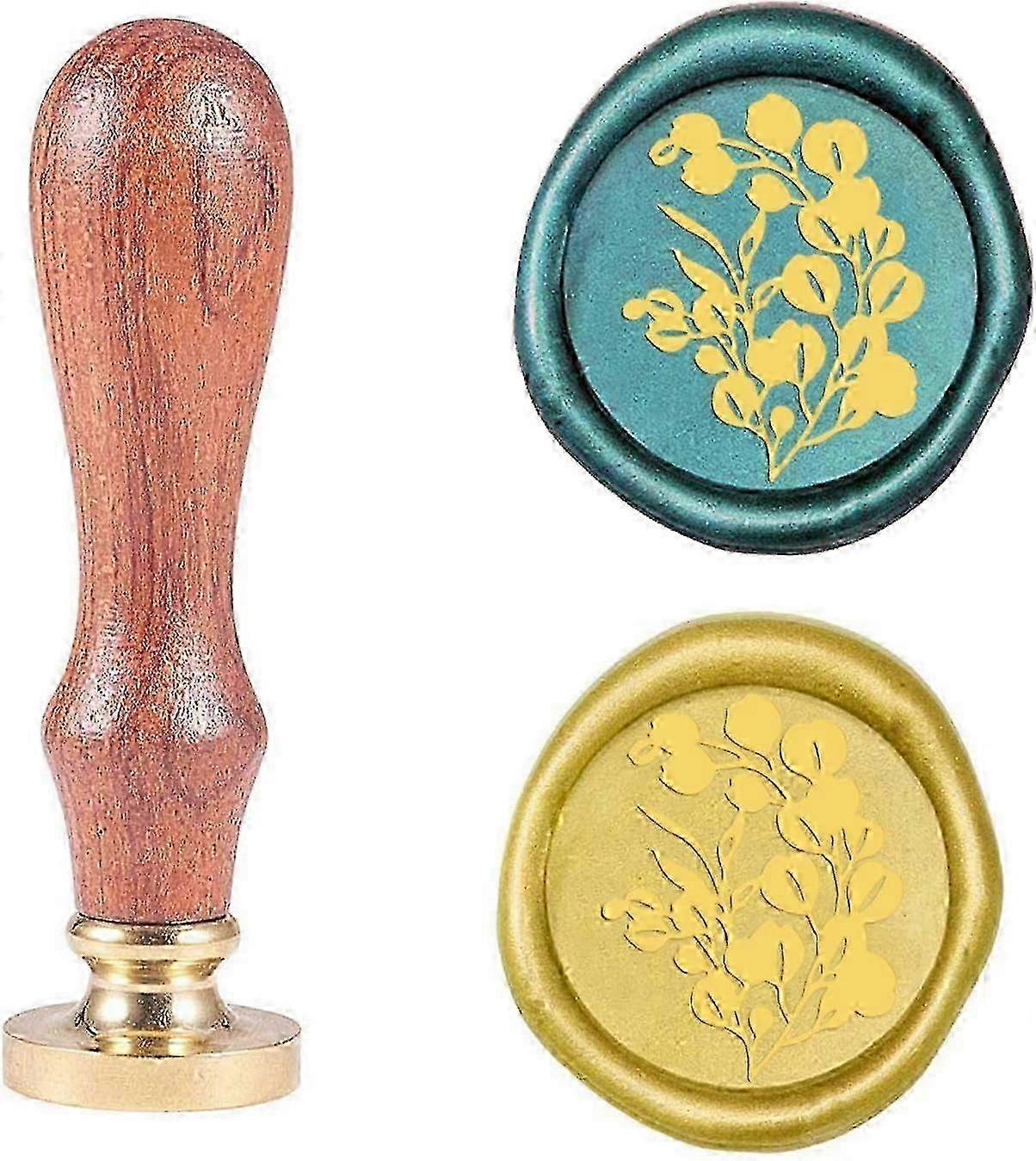 1pc Wax Seal Stamp Eucalyptus 25mm Vintage Sealing Stamp with Wooden Handle Brass Head