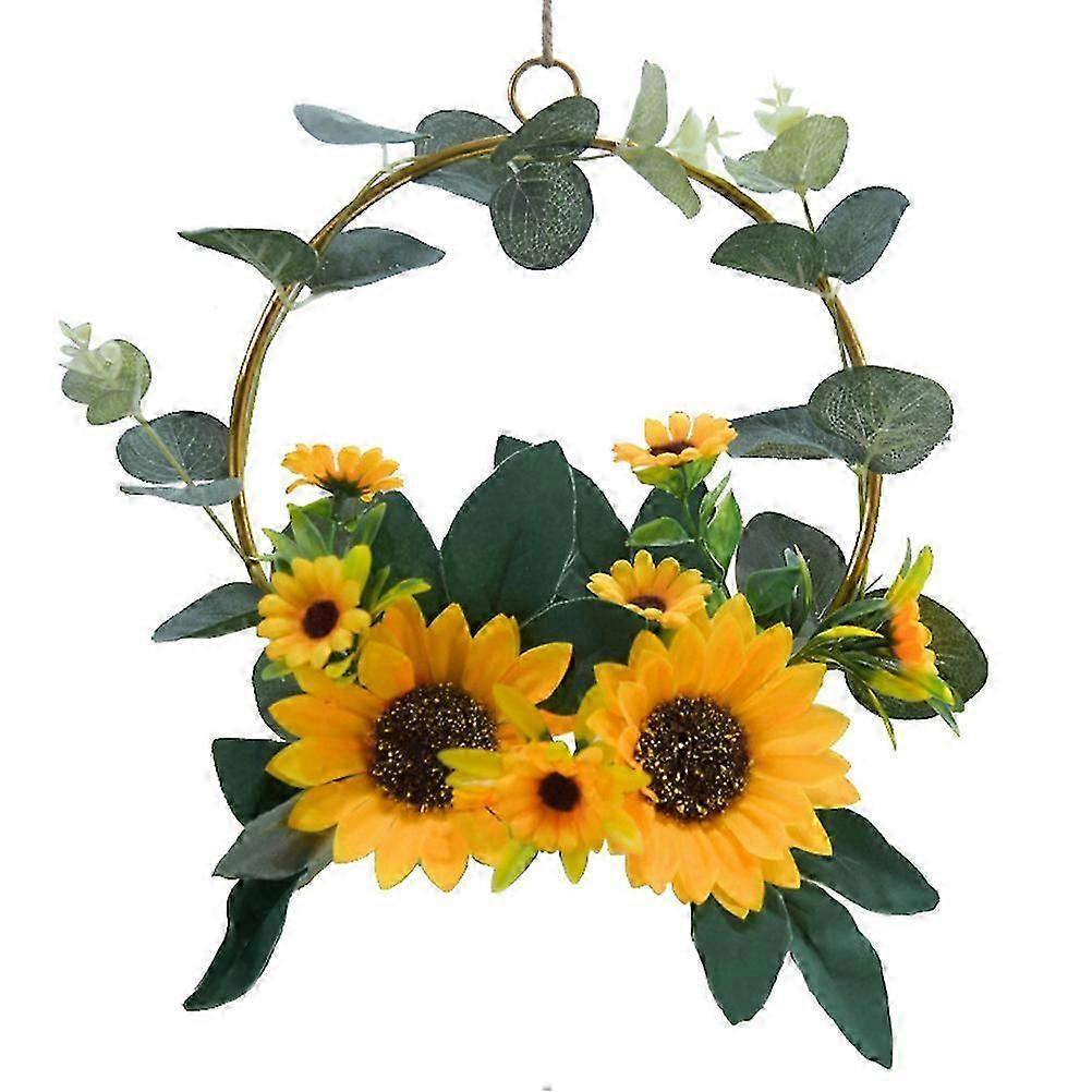 1pc Artificial Sunflower Garland Iron Art Simulation Sunflower Wreath Pendant