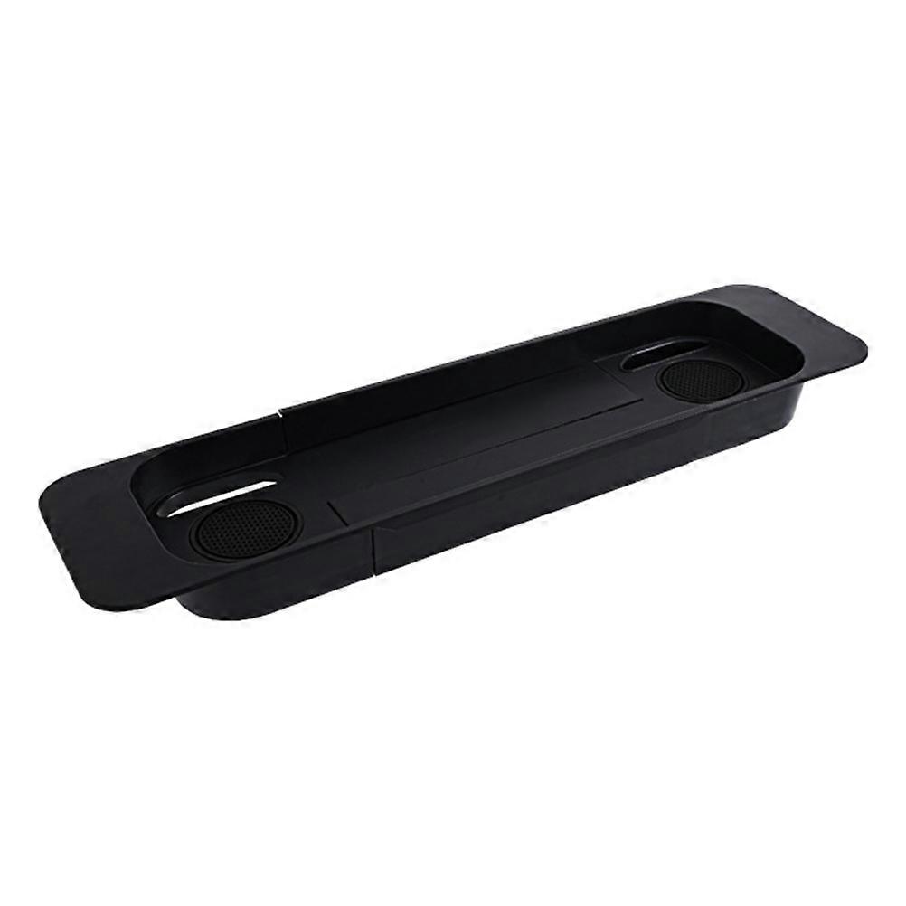 With such a practical plastic bathtub rack, it will be more convenient for you to watch your favorite book or movie while taking a bath without worrying that the book or your tablet will get wet. And when you are not taking a bath, it also can be used a storage rack to store some cleaning items. Features - Color: Black. - Material: Plastic. - Size: 57.00X15.30X5.00cm/22.40X6.01X1.97in - It is made of , healthy and plastic material. - Fine workmanship and beautiful appearance ensure its popularity and practicality. - The stretchable design and lightweight make it easy to use and carry. - The adjustable holders can hold your tablets, magazine, book or any other reading material and wine glass, etc. - Enjoy your book, tablet, phone or snack tray without them falling into your tub. Package list: 1 x bathtub rack
