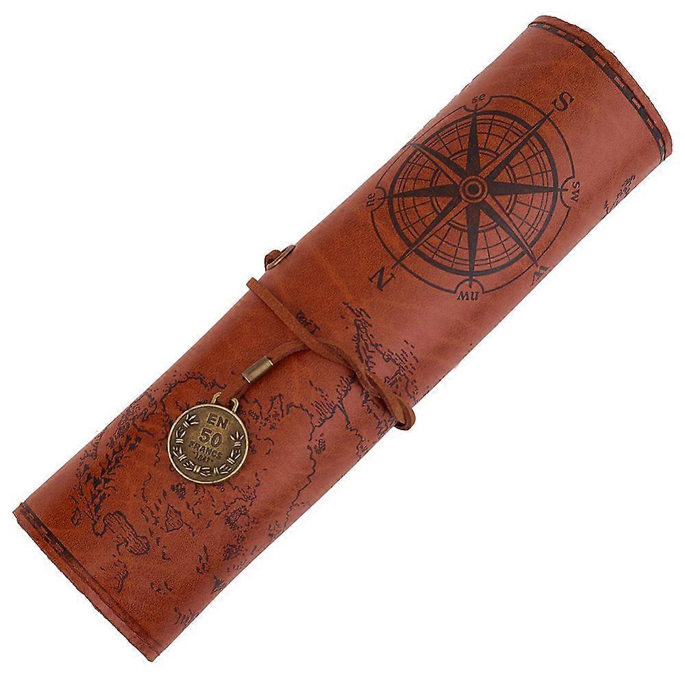 1Pc Treasure Map Pattern Imitation Leather Pen Roll Up Stationery Pencil Wrap Sandy Brown 205x310mm