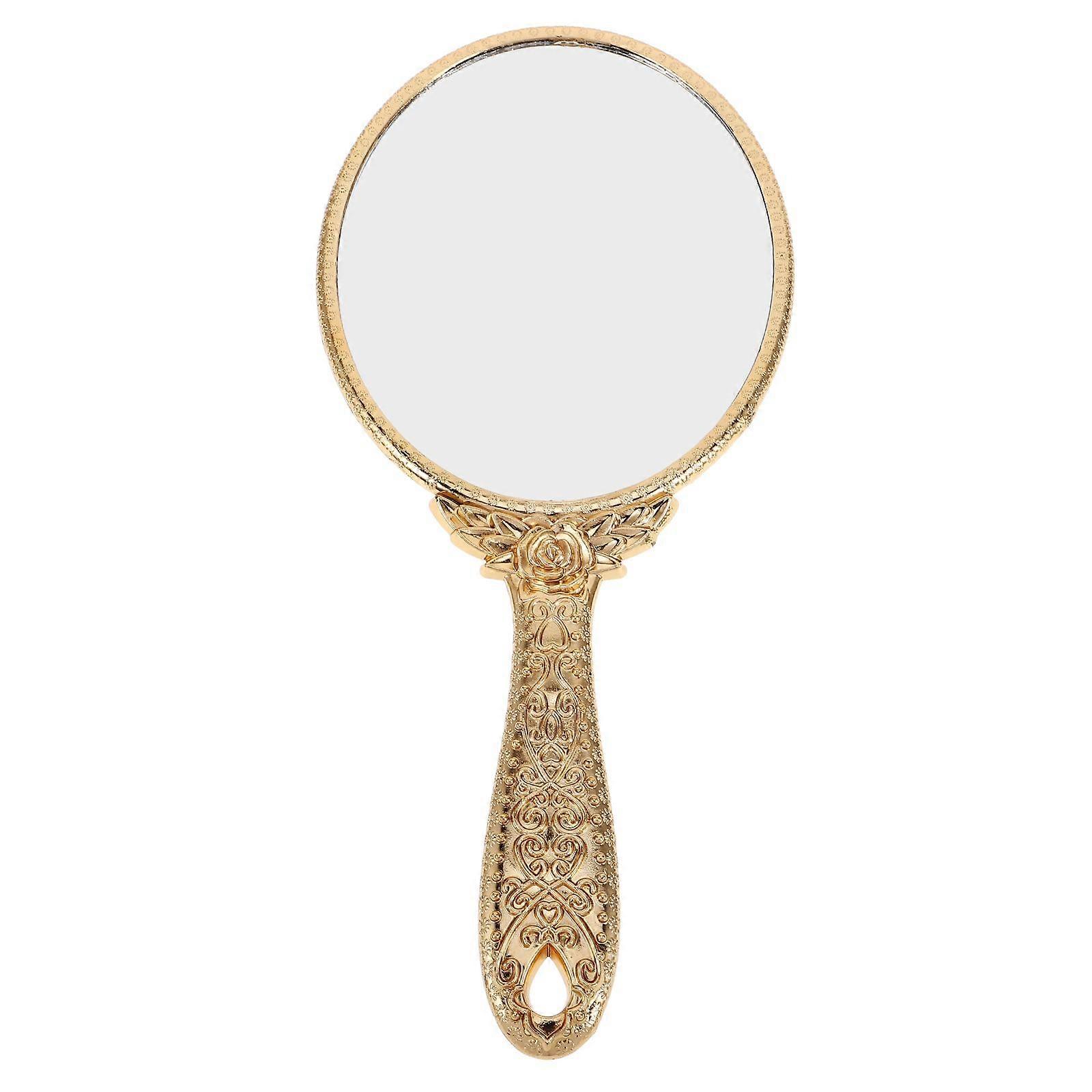 1Pc Carved Retro Handle Mirror Portable Mirror Woman Makeup Mirror (Rose Gold)