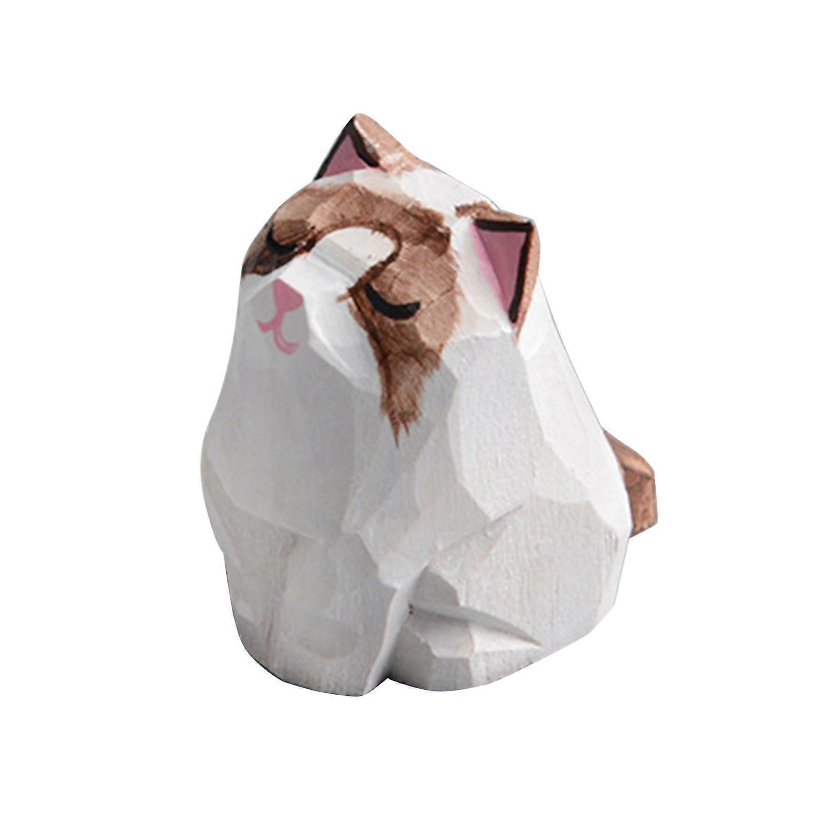 1PC Handmade Mini Cute Cat Statues Doll Car Figurines Wooden Cat Ornament Desktop Decorations Crafts for Kids Girl