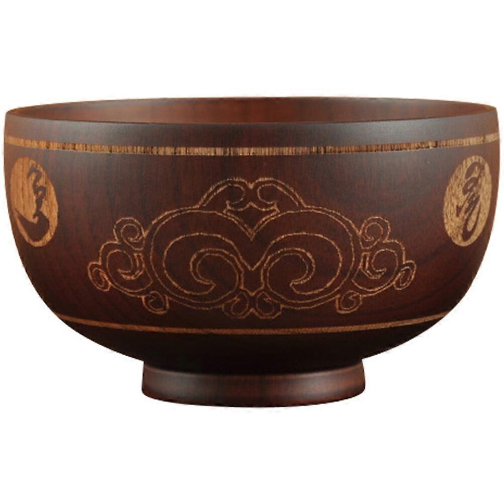 1PC Wooden Bowl Vintage Style Carving Pattern Salad Rice Bowl Soup Bowl