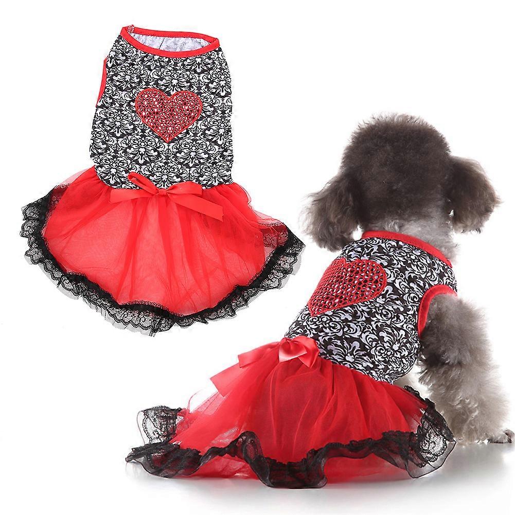 1Pc Dog Cat Bow Tutu Summer Dress Lace Skirt Pet Puppy Princess Clothes(Red S)