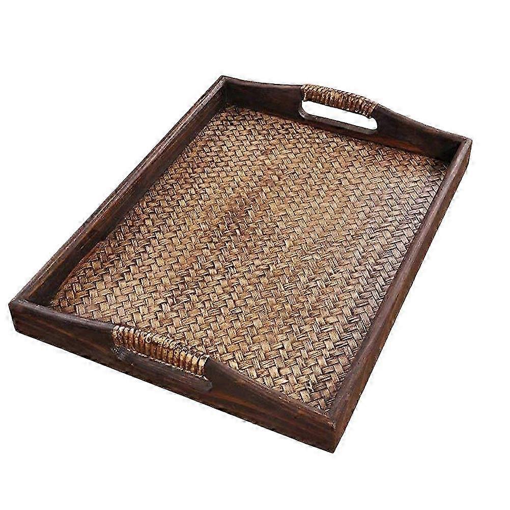 1pc Rattan Tea Tray Simple Home Storage Plate SPA Salon Tray 30x25cm