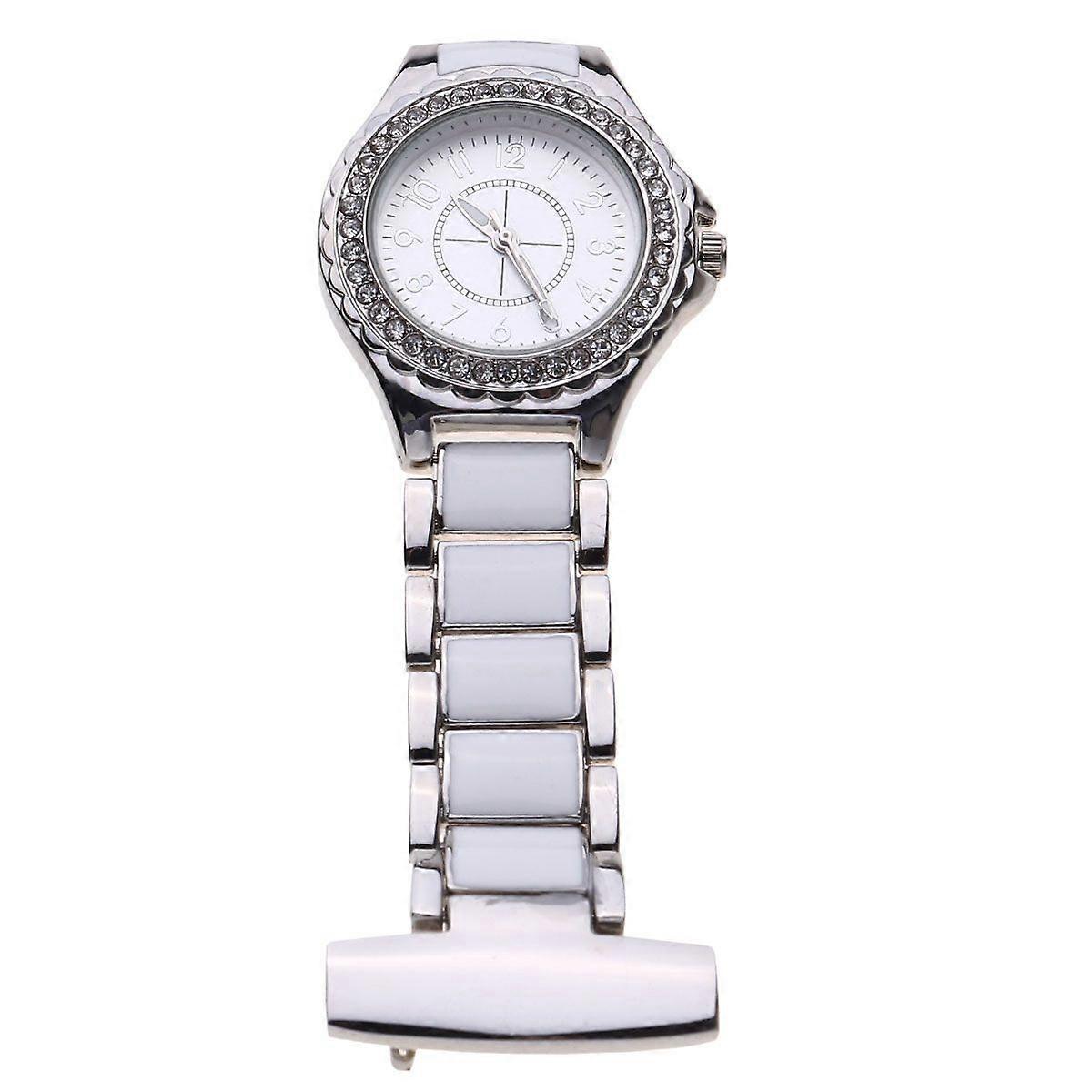 1pc Exquisite Rolling Diamond Nurse Pocket Watch Chic Doctor Hanging Watch Nurse Lapel Pin Watch (Silver)