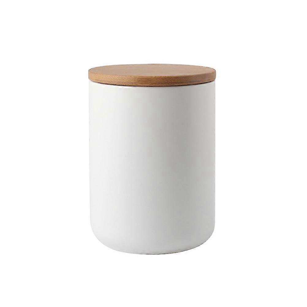 1pc Ceramic Jar Food Storage Modern Sealed Container Canister With Wooden Lid For Sugar Spice Loose Tea Coffee Bean Medium White