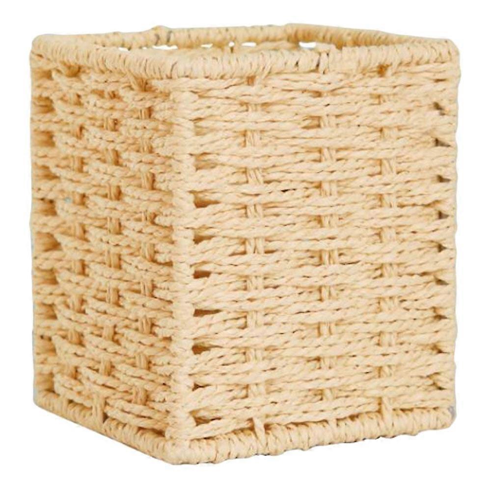 1Pc Hand-woven Storage Box Household Sundries Box Desktop Pen Container (Beige)