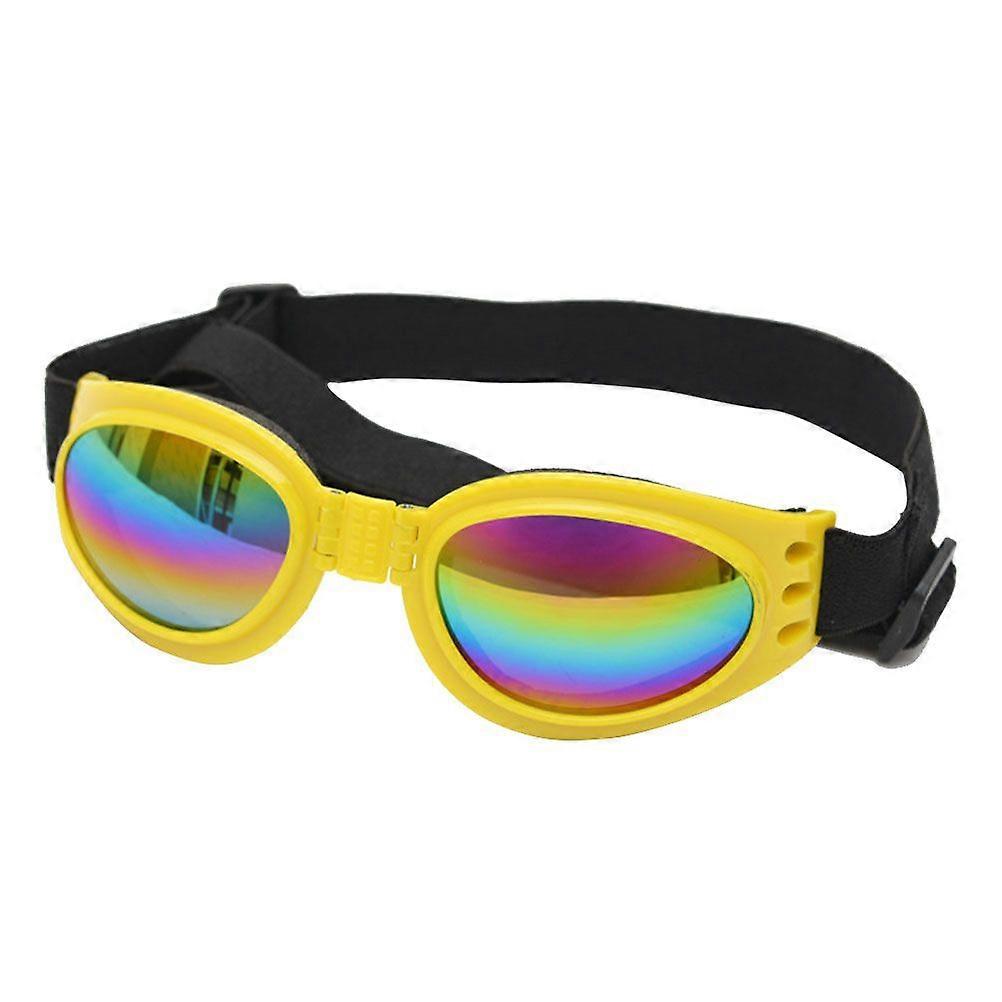 1Pc Dog Sunglasses Eye Wear Protection Collapsible Pet Goggles UV Protection Goggles with Strap(Yellow)