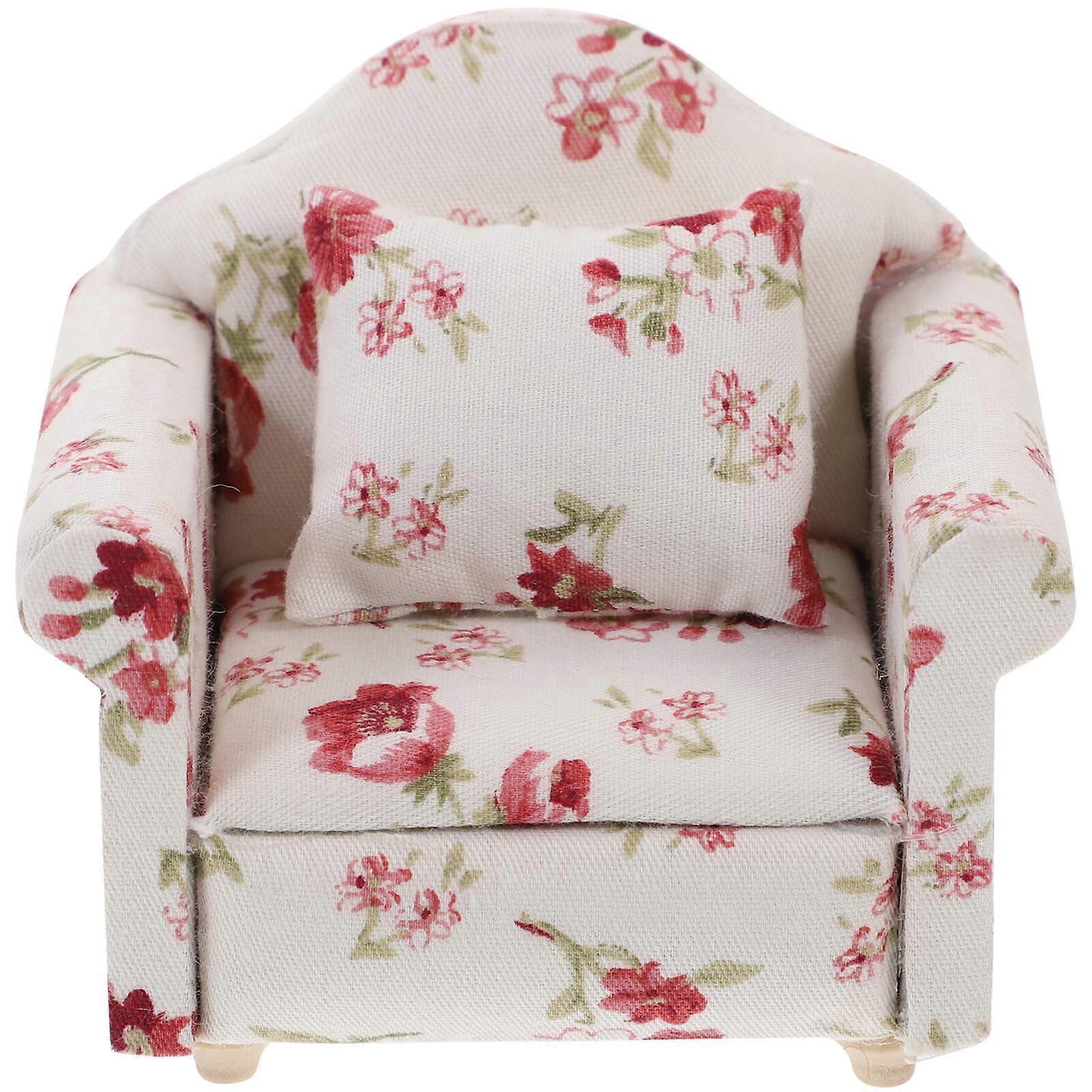 1PC 1/12 Mini House Accessories Mini Printing Armchair Model Miniature Printing Sofa Decor Wooden Mini House Sofa Accessories Mini House Pretend Play