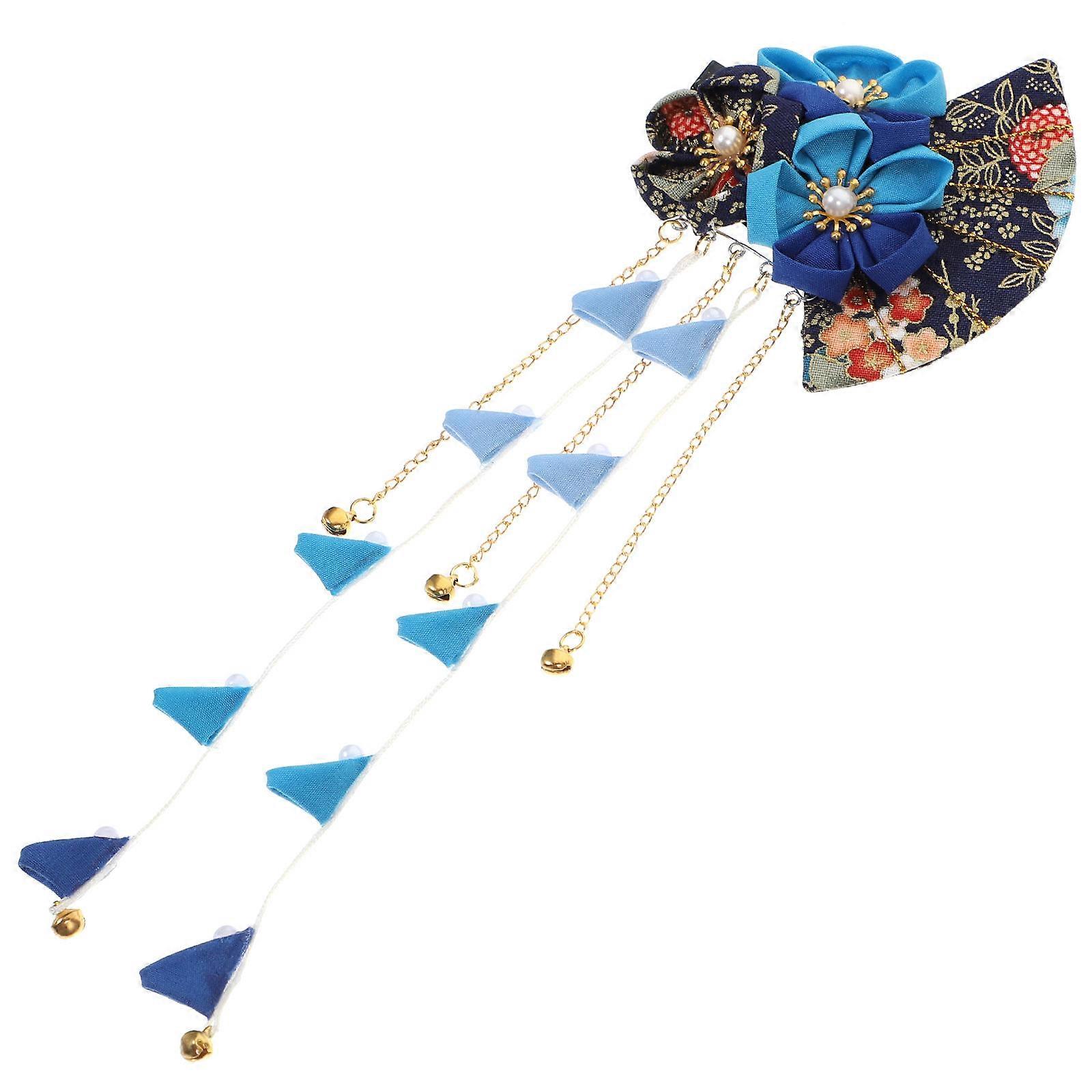 1pc Japanese Style Hairpin Long Tassel Clip Classic Bridal Headdress Wedding Hair Accessory for Women Blue Random Fan