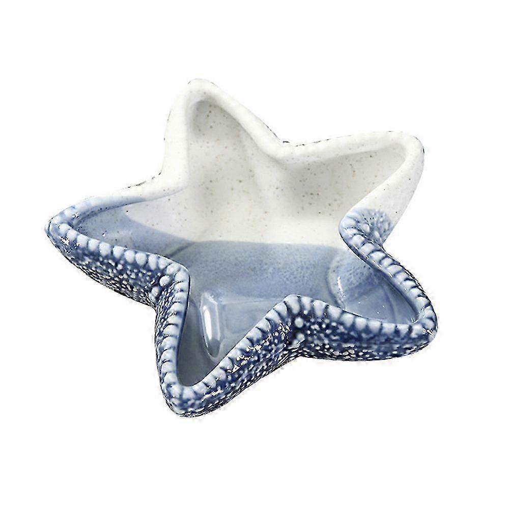 1pc Sea Star Shape Key Jewelry Ceramic Plate Home Decorative Ornament (Blue)-16X14.5CM-Blue