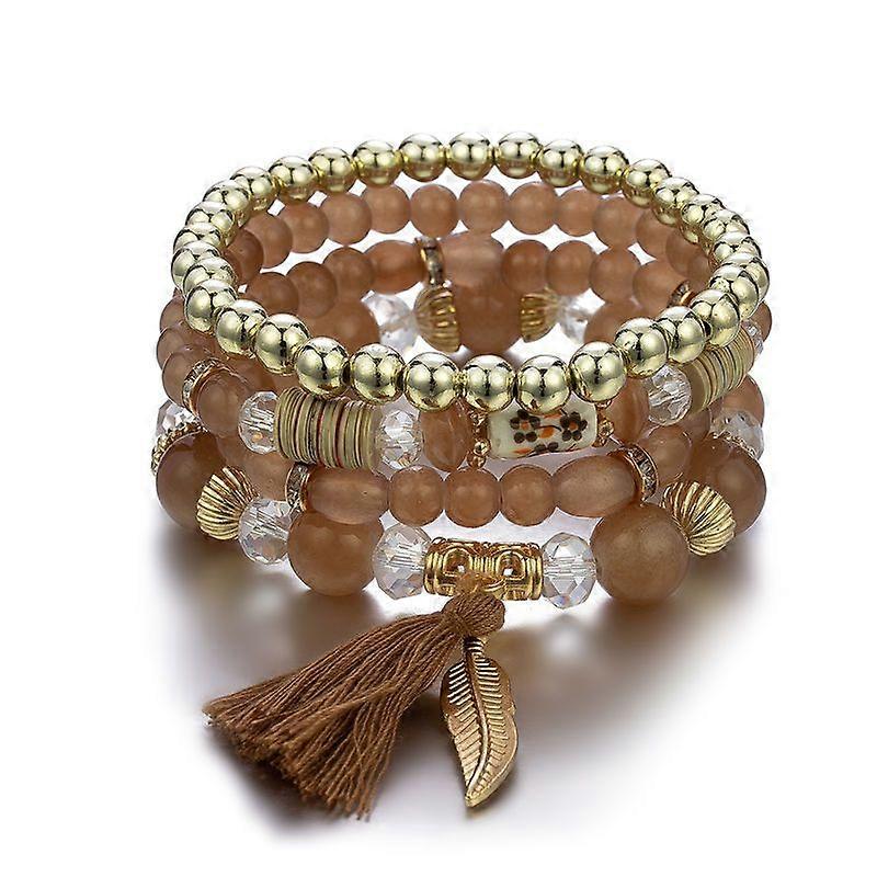 1PCS Bohemian Wood Beads Bracelet, Crystal Beaded Bracelets, Wings Pendant Tassel Multilayer Stretch Jewelry Women's Jewelry