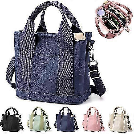 1PCS Multi-Pocket Zipper Tote Bag, Japanese Canvas Handmade Satchel with Compartments - Small Dark Blue