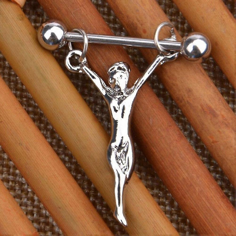 1pcs Nipple Piercing Statue Jesus Stainless Steel Nipple Barbells Chains Statue Of Jesus Nipple Shields Bars Body Jewelry